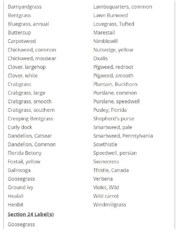 Expected & Intended Results The application was designed to target and eliminate a range of highly visible and persistent weeds including: - Large and smooth crabgrass