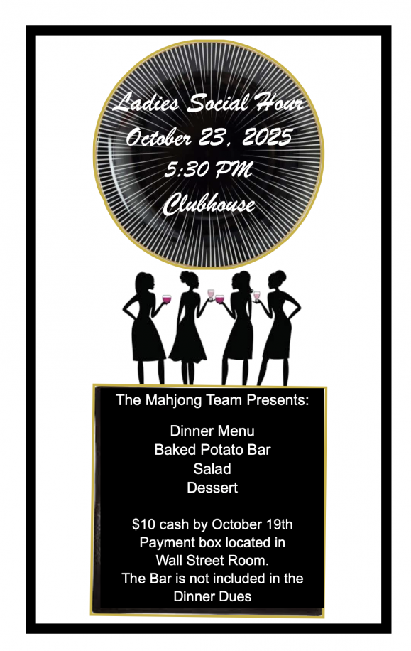 Ladies Social Hour Thursday, October 23 at 5:30 pm
