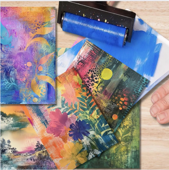 In this class you will explore mono-printing on a gelli plate. It is aptly named “mono” printing because it is impossible to create the same exact print again. We will create amazing and unique papers using acrylic paint layers in vibrant colors. A variety of textured items and stencils will be used in the process. The completed papers can be used in collage art, card making, gift tags, die cuts, and more. Examples of what they can be used for will be displayed. Caution to the attendee: You may become addicted to this process and art. You may never look at a potato masher or the bottom of a sneaker in the same way again! J
