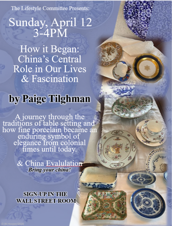 For an evaluation (approx value) of your dining china, please bring a piece.