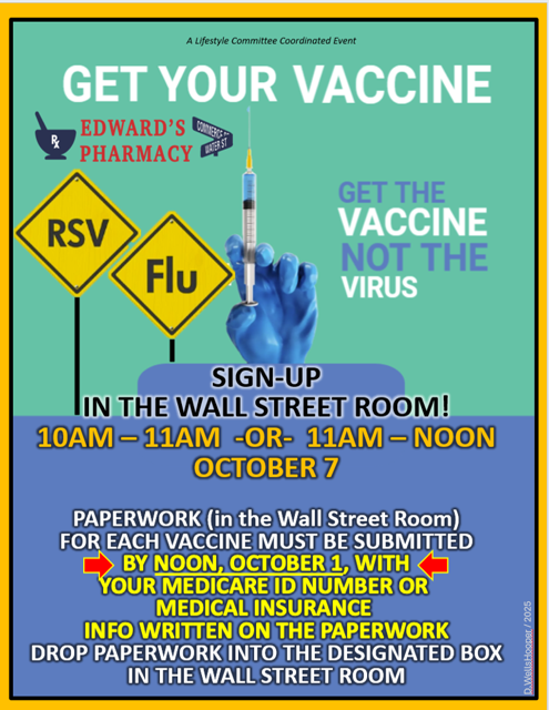 VACCINE PAPERWORK IS IN THE WALL STREET ROOM.